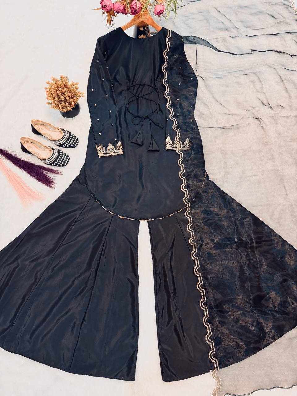 Top Fabric :- Heavy Natural Crepe Silk with Heavy 5mm Embroidery Sequence Work