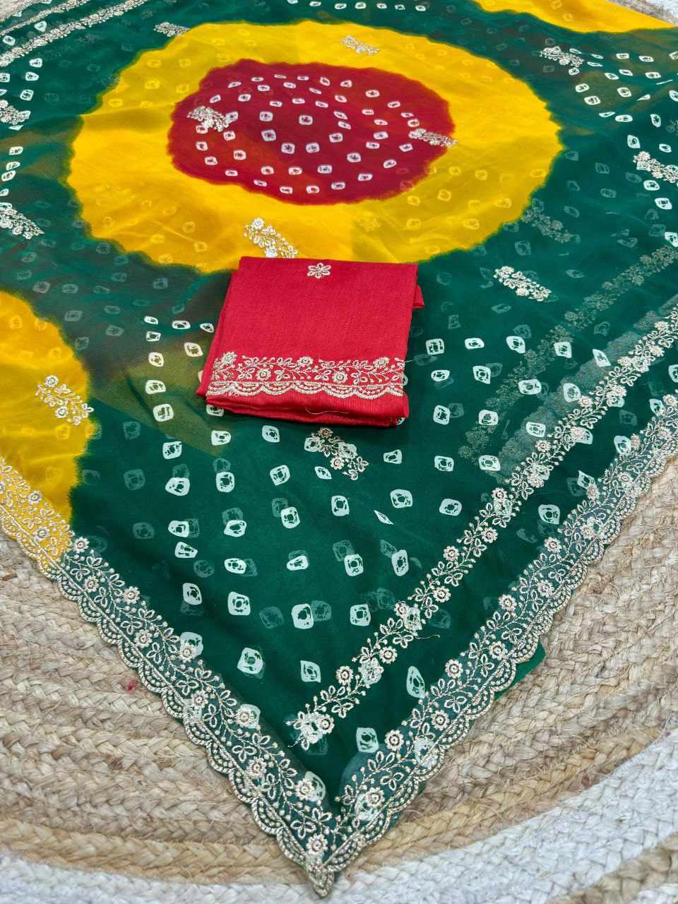 | Name : | PIYU P1051 LERIYA BANDHANI-3 Green Saree |